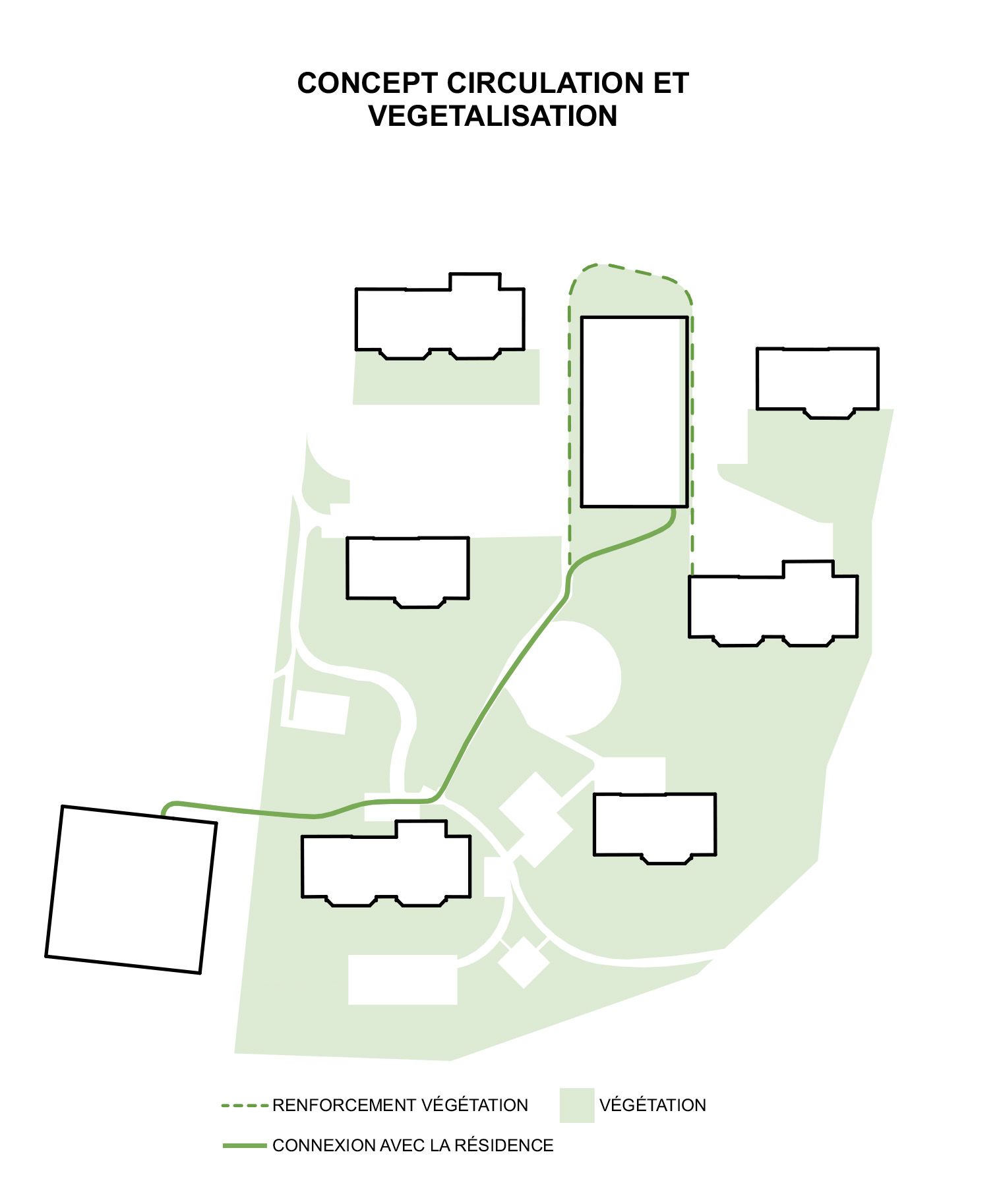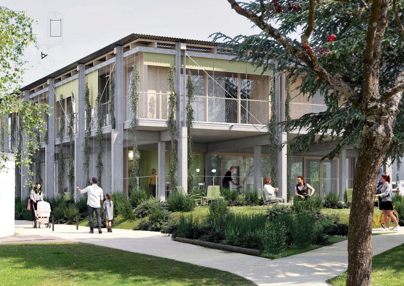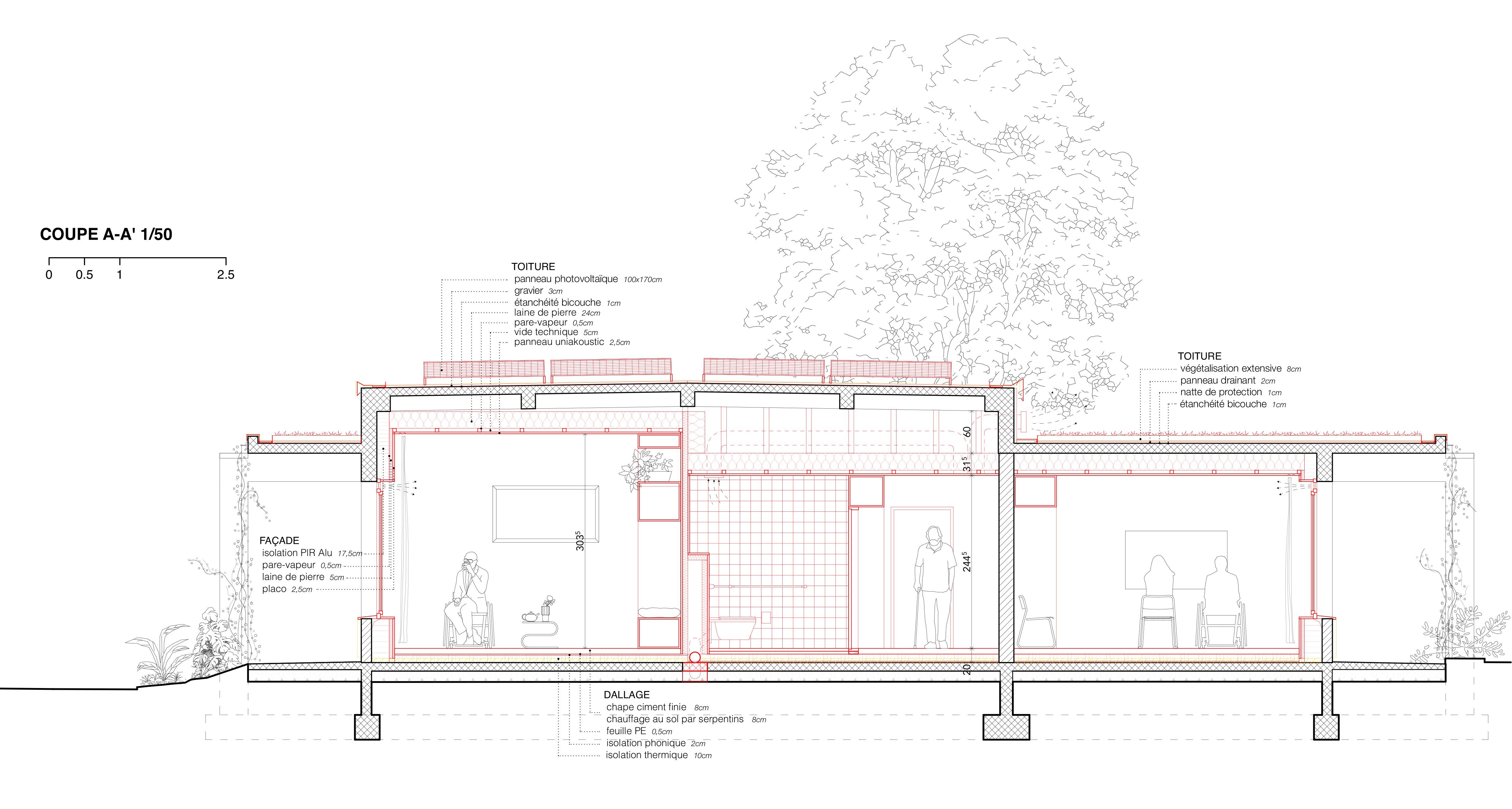 Dans une première phase le Maître d'ouvrage souhaitait que lui soit soumis une proposition de surélévation du bâtiment existant en vue de la création de nouveaux appartements. Cependant, cette hypothèse a été abandonnée dans le cadre du deuxième tour du concours.