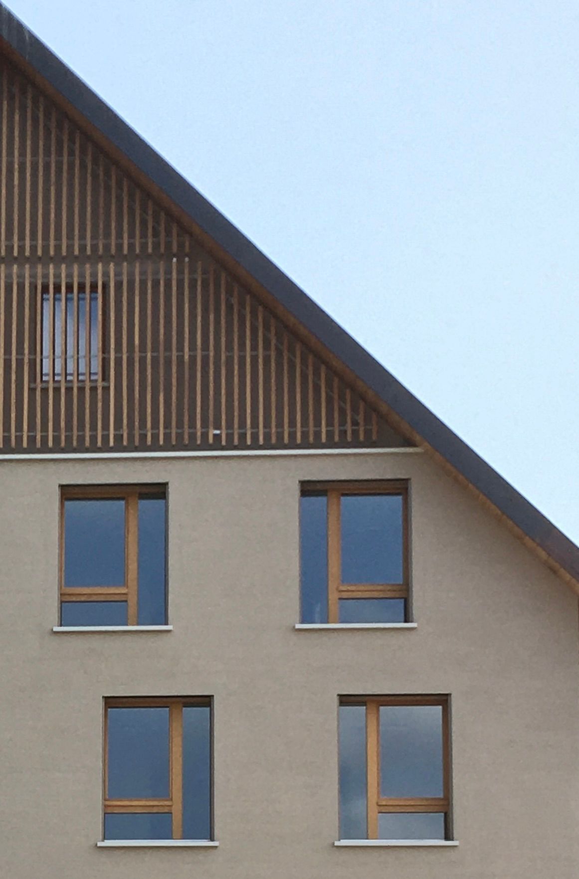 L'analyse de la structure ne permet pas de la conserver mais le projet vise à la conservation du volume et de la substance historique des deux bâtiments majeurs présents sur le site; la grande ferme et sa dépendance, dite La Carrée. La densification est effectuée par la construction d'un nouveau bâtiment, après démolition du hangar situé à l'est de la parcelle. La place entretient un rôle significatif: située en bordure de la Grand-Rue au centre du village, elle favorise les liens sociaux entre les résidents de l'EPSM DUC et les villageois de Sassel. Elle en devient le point de convergence. Ainsi, ces trois bâtiments qui forment l'ensemble du nouveau projet s'organisent autour de cet espace pignon sur cour.